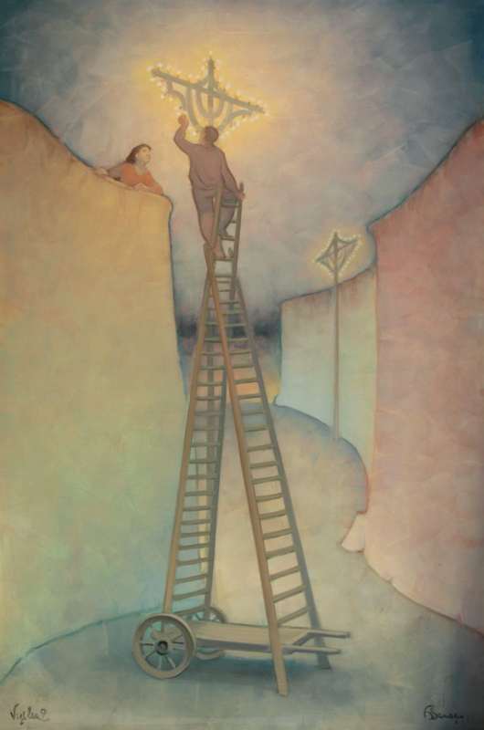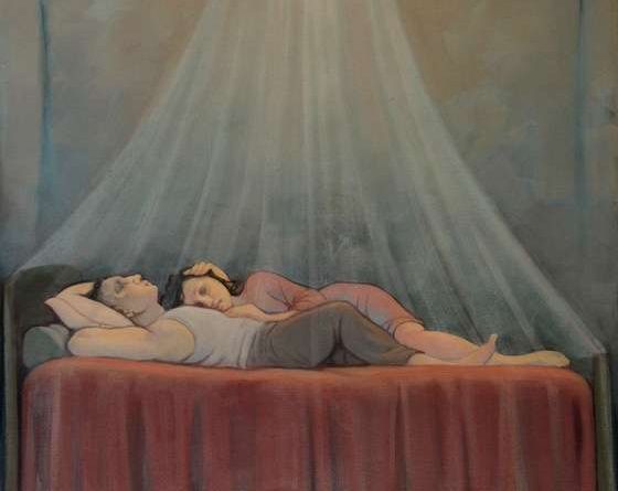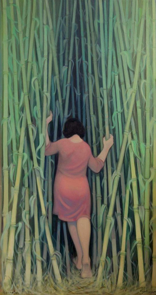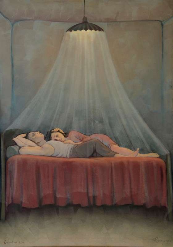 Il mondo pittorico di Ezio Sanapo è pervaso da una sorta di realismo magico con un accurato studio della luce che rende le atmosfere quasi rarefatte e riportano alla mente le visioni delle caldi estate del Sud. Una terra che Ezio Sanapo riesce a raccontare con il suo poetico segno suggerendoci visioni ed emozioni senza tempo. Un segno che delinea corpi colti nel quotidiano, nello spazio intimo della casa, nei gesti che esprimono tutta la tenerezza dello stare insieme o mentre ci si addentra in un canneto metafora della solitudine. Una tavolozza cromatica tenue dalle mille sfumature racconta con raffinata poesia i paesaggi interiori e geografici del suo amato Sud. (an.fu.)