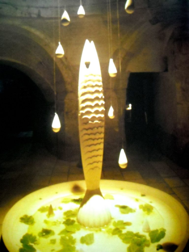 Le cave apparivano come un giardino sospeso tra natura e artificio: da un lato la durezza della pietra scavata, dall’altro i fossili, i petali sull’acqua, i bagliori solari e le nenie del vento che restituivano vita al paesaggio. Qui, tra reperti di lavoro e tracce millenarie, la pietra raccontava il ciclo perenne di distruzione e rigenerazione.