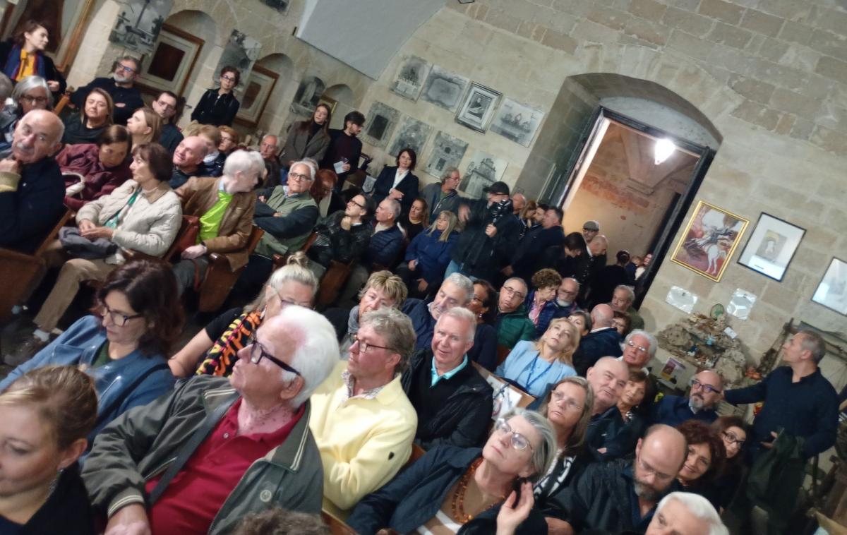In apertura di serata dopo i saluti della presidente Elisabetta Indino, i versi in griko omaggio di Gaetano Mastrolia che parlano di cenere come la sola cosa che resta dell’uomo… a noi piace pensare che, cenere a parte, c’è qualcosa di impalpabile che invece resta per sempre: l’anima pura di chi ha donato agli altri il proprio talento e la propria arte. Come le note, suggestive, eseguite magistralmente dal maestro Martino Pezzolla che ha intonato l’aria più famosa del Rugantino. Il musical che lo portò oltreoceano a Broadway dove fu acclamato come a comic genius. Eh sì, mai definizione più azzeccata.