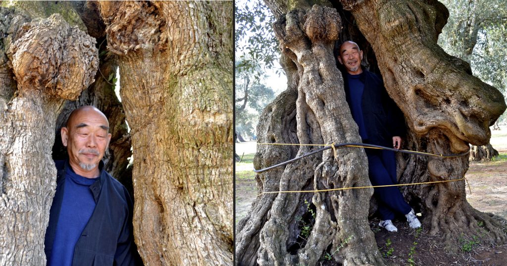 In quell’occasione parlò del suo straordinario viaggio in bicicletta attraversando diciasette nazioni per arrivare in Italia, a Brindisi, e mentre parlava si comprendeva la profonda cultura dell’uomo, imprescindibile dall’artista affascinato dal rapporto uomo natura, che aveva instaurato un legame particolare con il Salento. Per lui la luce che c’è qui aveva suggerito la metafisica a De Chirico e si sentiva «in equilibrio nel bel mezzo delle due culture: a destra c’è quella giapponese, a sinistra quella italiana; il mio pensiero non è una fusione ma la ricerca dei punti di contatto che sono comuni ad entrambe e che devono solo essere scoperti», aveva espresso.