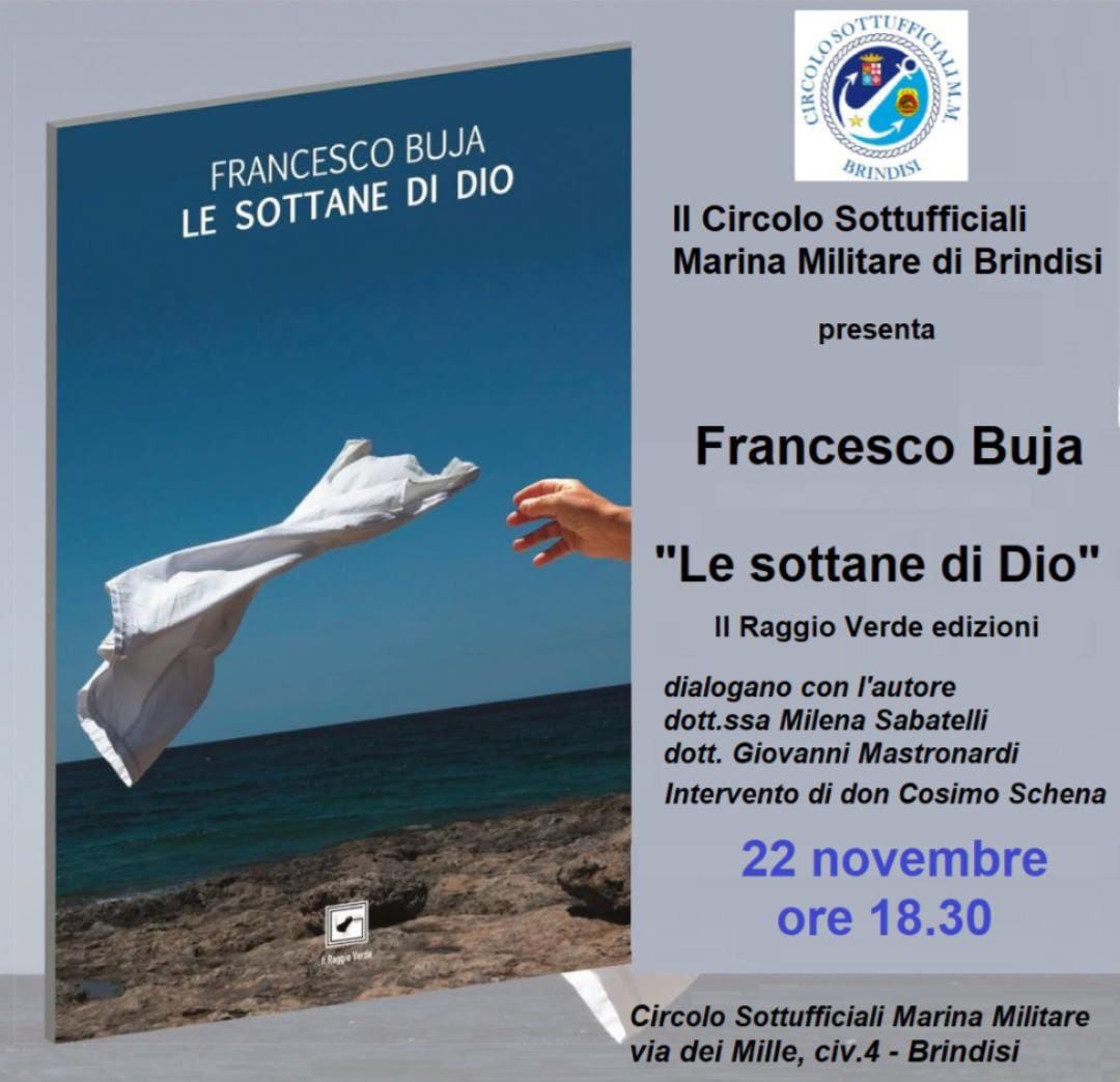 Un romanzo dannunziano, ma caratterizzato anche da una vena pirandelliana e da un sapore che richiama “le ambizioni sbagliate” e “gli indifferenti” di Moravia. È il romanzo “Le sottane di Dio”, opera prima del giornalista leccese Francesco Buja che sarà presentata sabato 22 novembre alle 18.30 al Circolo Sottufficiali della Marina militare, in Brindisi.